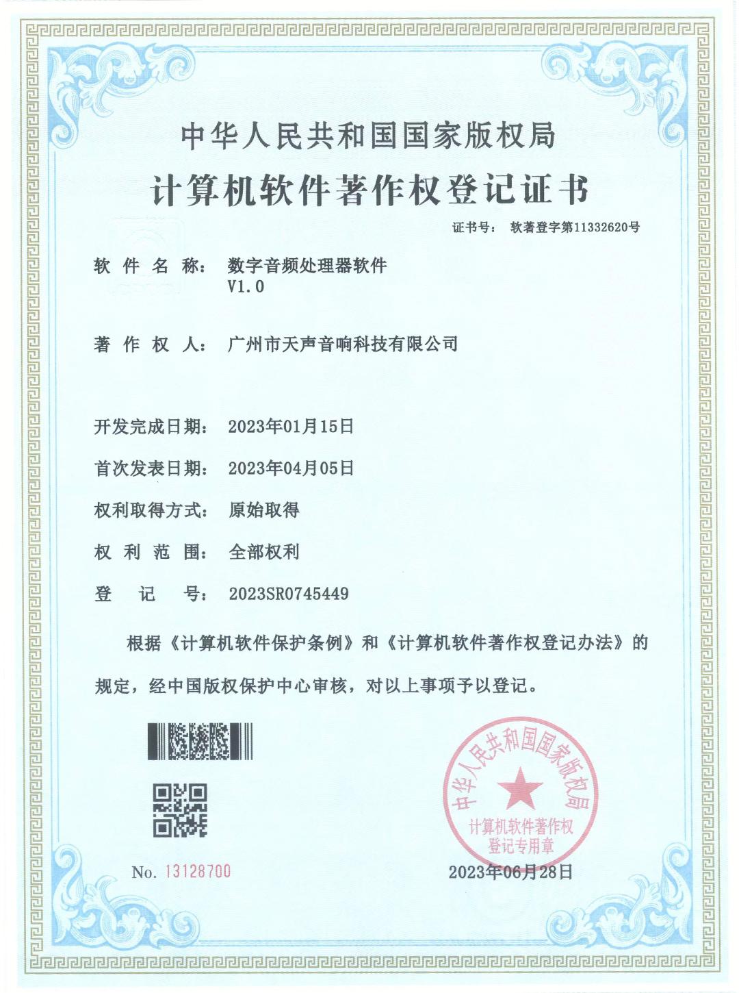 軟件著作權 數字音頻(pín)處(chù)理器軟件V1.0